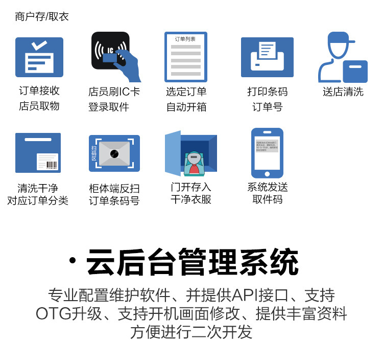 當(dāng)今大數(shù)據(jù),人工智能,物聯(lián)網(wǎng)等技術(shù)手段的革新,自助經(jīng)濟(jì)服務(wù),給人們帶來方便和全新的購物體驗(yàn)。把生活與智能化緊密結(jié)合,提升生活幸福感。智能洗衣柜是顧客與洗衣店之間的物流智能柜,洗衣店為需要洗衣、洗鞋、干洗等用戶提供全天24小時自助服務(wù)。
